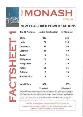 I’m going to start with a “fact sheet” issued by the pro-coal Monash Forum. Interestingly, it draws on the work of the anti-coal site CoalSwarm, so there’s a fair bit of basic agreement. Here’s the sheet