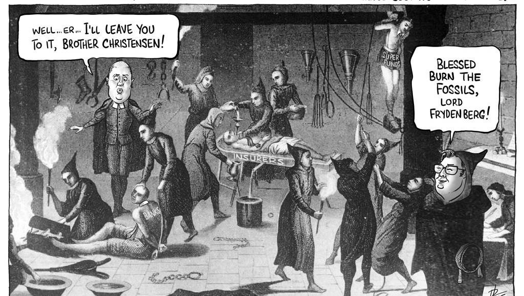 Had to post this stunning Pope cartoon. Frydenburg & Christiansen’s coal torture chamber. Or as they’d have it- coal’s tourtured chamber.